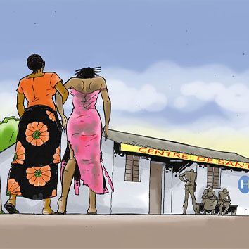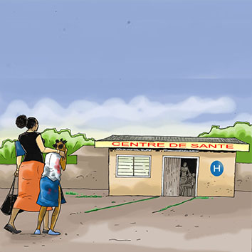 Affiche sur le viol. Etape 1. Accompagnement de la victime au Centre de Santé