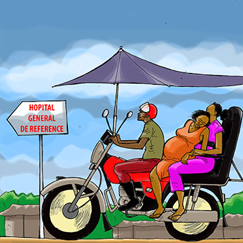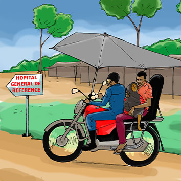 Affiche sur les Motos-Ambulance. Séquence 1. Accompagnement d'une femme en urgence de maternité